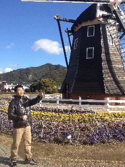 ハウステンボスの代名詞、風車をバックにピンホイール