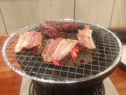 炭焼きハンバーグ、とりもも、ヤゲンナンコツが来ます