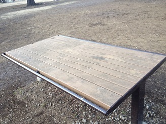 お馴染の丸テーブルはいつもの所よりも断然キレイ。そして芝生から離れているから人が少ない