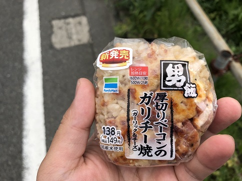 男飯 厚切りベーコンガリチー焼 食べてみた コメントを残す Tweet Pocket ファミマの新商品おにぎりです! ガリチーとは、ガーリックチーズの略 ガツンとくるガーリックの風味! そしてチーズのボリュームはなかなか…… CM