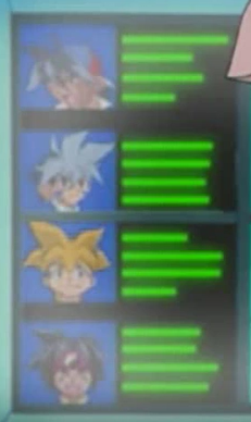爆転シュートベイブレード第20話で、ダグラス長官がモニターを観ているシーンで出てきたBBAチームの能力値データっぽいステータスバー