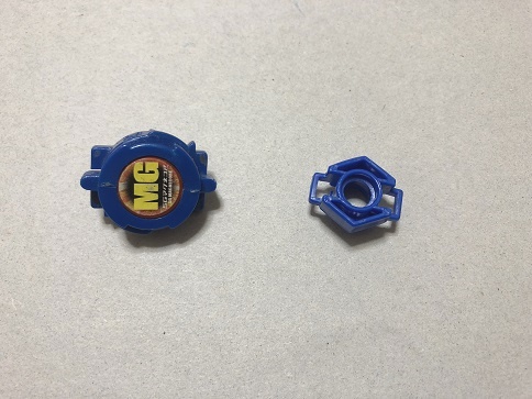 メタル=フェイス……星獣のマークが描かれているが、爆転と違ってただのイメージ。ネジ式になっており、ウィールとトラックを接続するジョイントパーツになっているので、これが無いとベイが完成しない必須パーツ。メタル製のものに付け替えてセッティング変更が可能