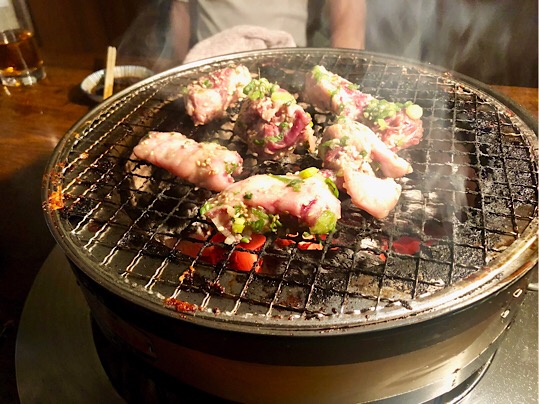 塩タンは、胡麻とネギが上に乗っているので、こんな風に包んで焼きます