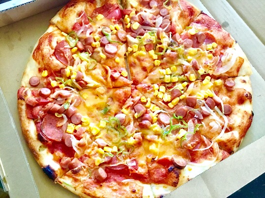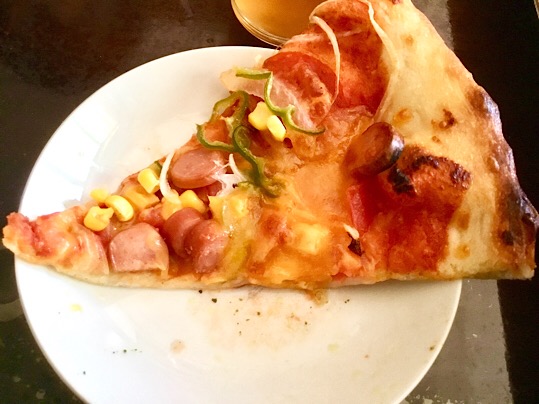 ウインナーとコーンとピーマンのピザ
