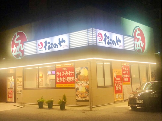 ご飯と味噌汁おかわり自由の松乃屋に入って