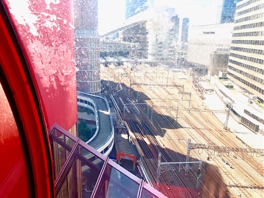 これが、いつも大阪駅着いた時に不思議に感じてた観覧車の中かぁ