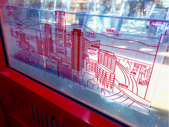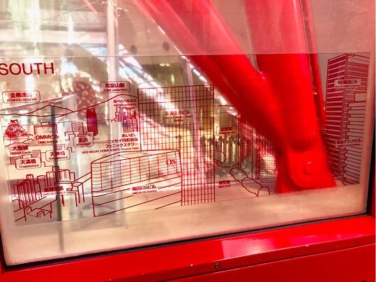 さぁ、いざ大阪駅を見下ろす空の旅へ!ご丁寧に、どの方角に何が見えるかはゴンドラの中に描かれています……