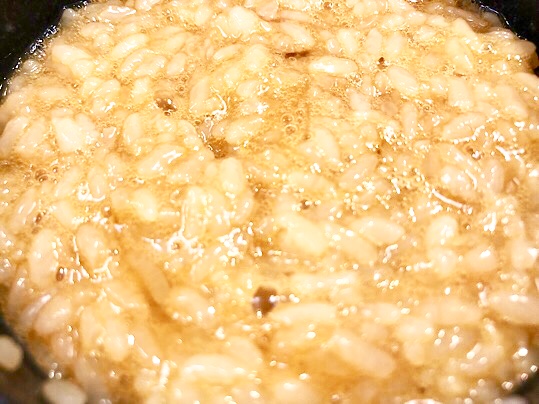 ご飯に醤油をかけて、しっかりと馴染ませます