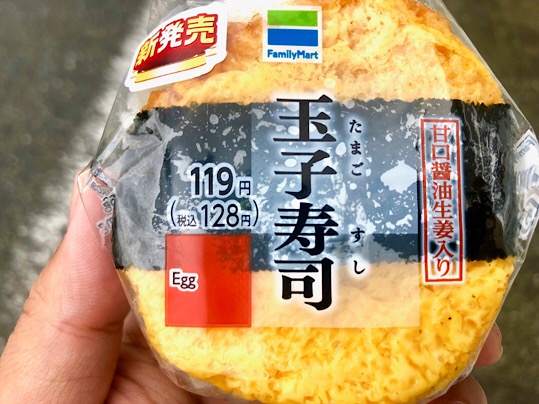 ファミリーマート 玉子寿司 甘口醤油生姜入り コメントを残す Tweet Pocket ファミリーマートの新作おにぎり 玉子寿司をまさかそのままおにぎりのフォーマットにするとは しっかりと海苔が巻かれてます まごう事なき玉子寿司! フワフワの玉子の食感がたまらん 玉子とご飯の間には甘口の醤油と刻まれた生姜が入っていて それが、これがお寿司だという事をちょいちょい思い出させてくれますw CM