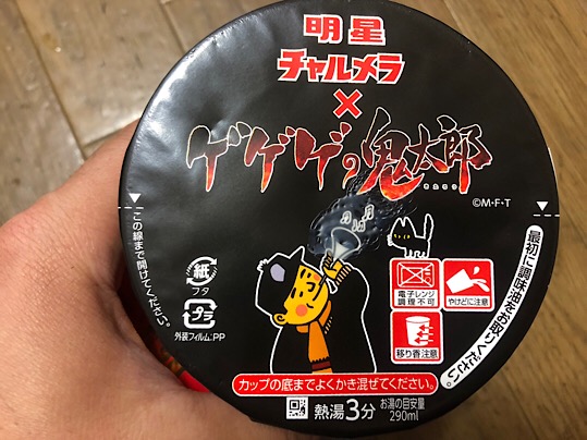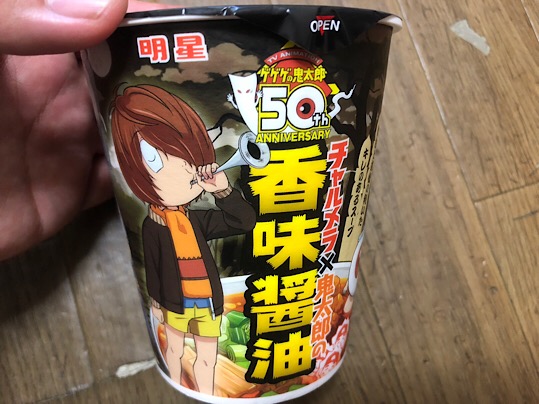 明星チャルメラ×ゲゲゲの鬼太郎 香味醤油 食べてみた コメントを残す Tweet Pocket ゲゲゲの鬼太郎50周年を記念したコラボカップ麺 今期アニメのイラストが描かれています え、ネコ姐さんがいないって? 彼女は別の味に描かれてます 肝心のラーメンの方ですが 香味醤油がかなり良い仕事をしており、柔らかな旨味を出しています スープまで飲みたくなる CM