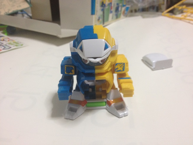 下爪はスライドして横並び!穴の位置はそのままだからフットパーツを差し込めば固定出来るぞ!そして、レオンのヘッドパーツを差し込んでボディを固定すれば……!