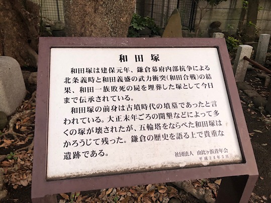 ここは、北条氏と和田家の戦いの末、敗戦した和田一族の屍を埋葬している地のようです
