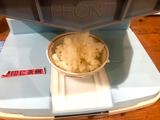 ボタンを押すだけで一定量のご飯が降ってきます!これなら衛生的だし、便利だよね!