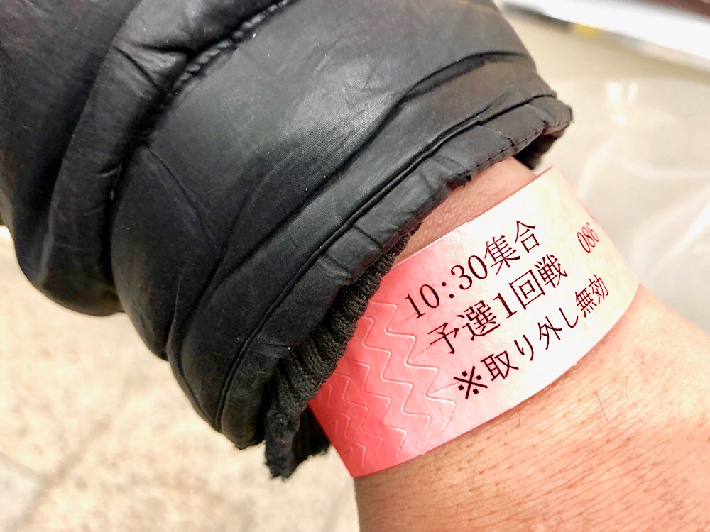 そして、参加資格として左腕に紙製のリストバンドがまかれます