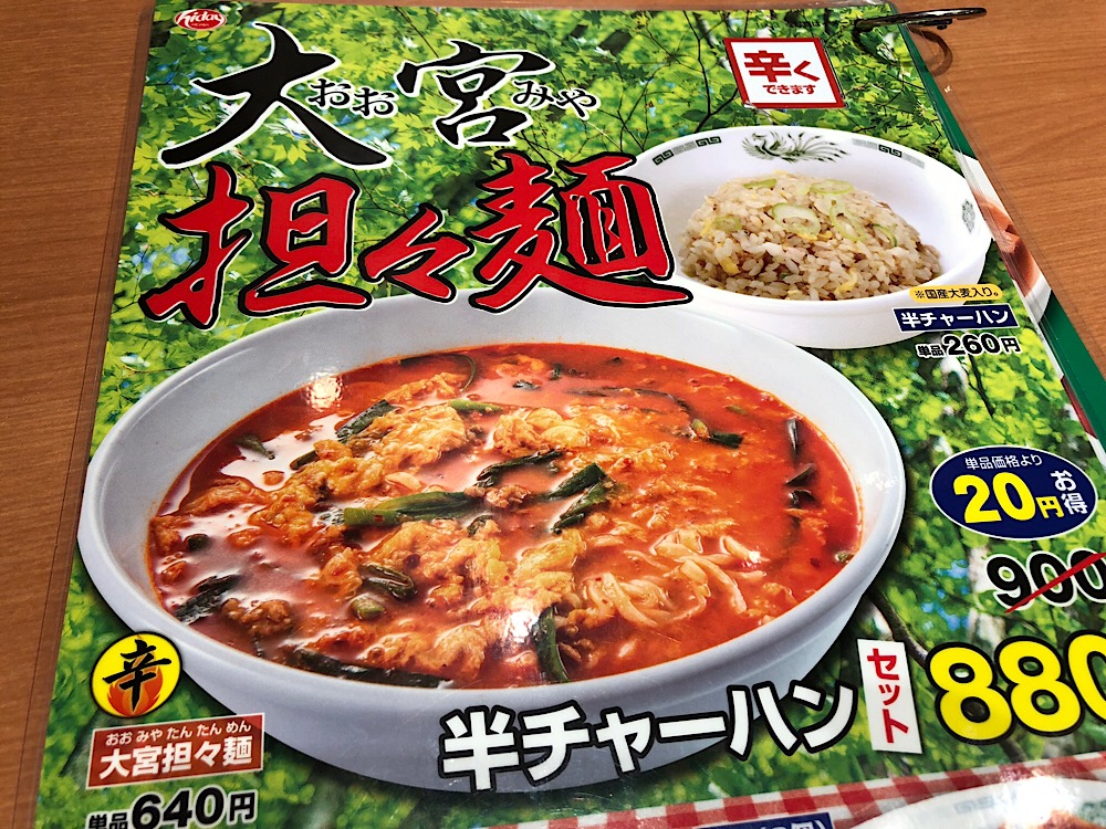日高屋 大宮担々麺 食べてみた コメントを残す Tweet Pocket まだたまーにめっちゃ寒くなる四月にはこんなメニューが食べたくなります 大宮と付いてますが、大宮の名物というわけではなく、単に日高屋発祥の地である大宮の名を冠しただけのようです 辛さは普通か辛めを選択可能 辛めにした場合は、真ん中に豆板醤が載せられます 辛いのが好きなら辛め一択! そこそこ辛くなります ニンニクの効いた程よい辛さが美味い! 卵とニラが程よく辛みを包んでくれるので美味しくいただけます CM