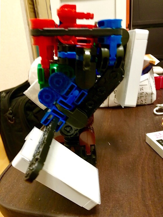 Keiさんが洗濯バサミとは違う新たな材料で製作した合体ロボ型フリックスだ!