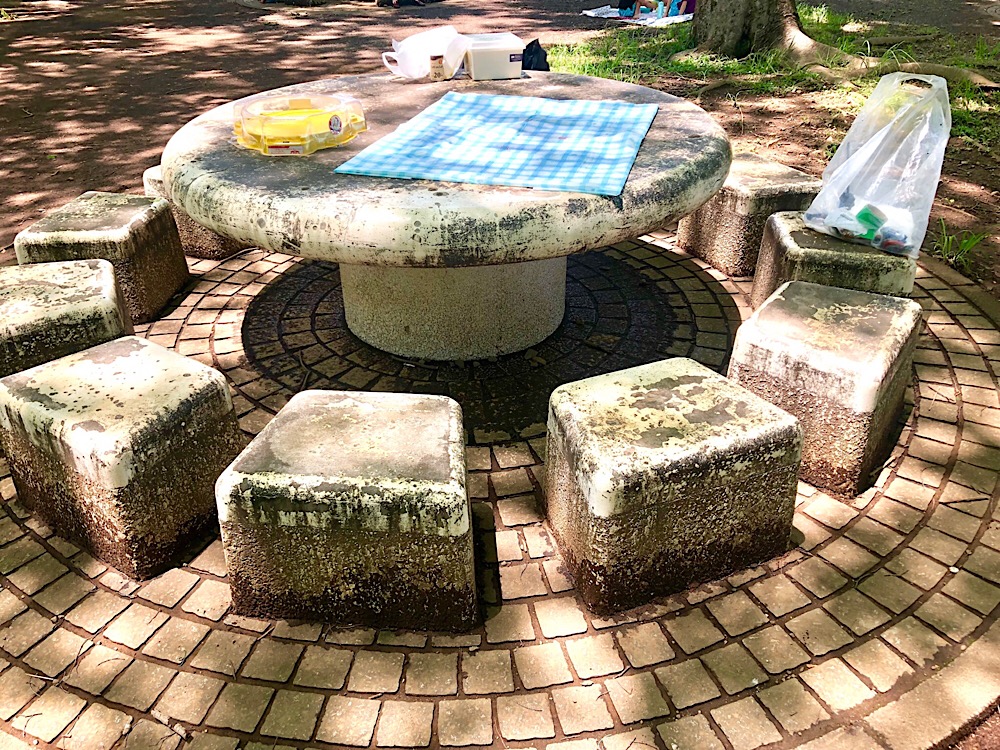 園内は人混みが多く、テーブルもほとんど埋まってましたが