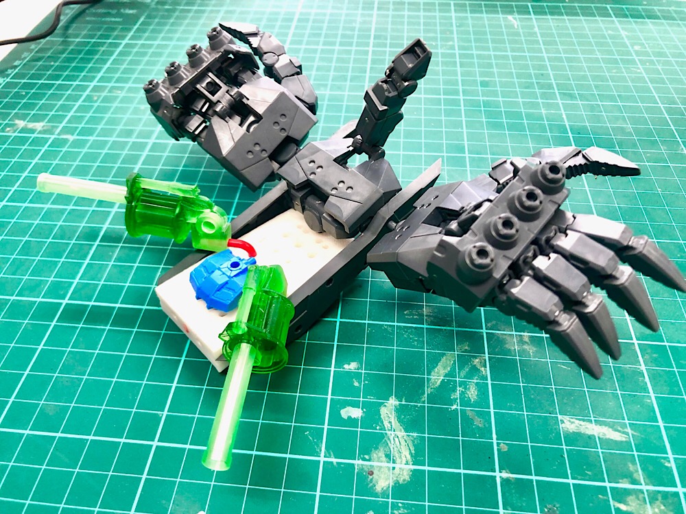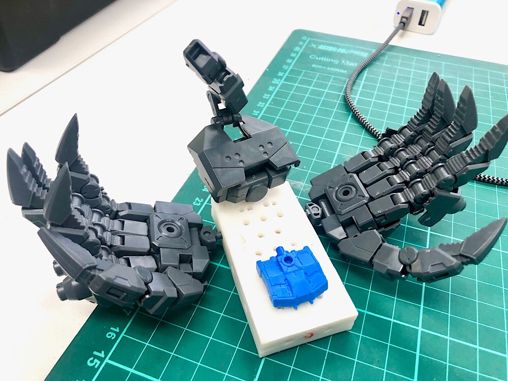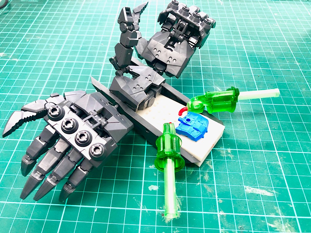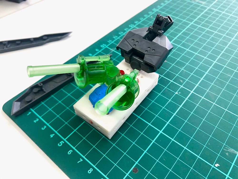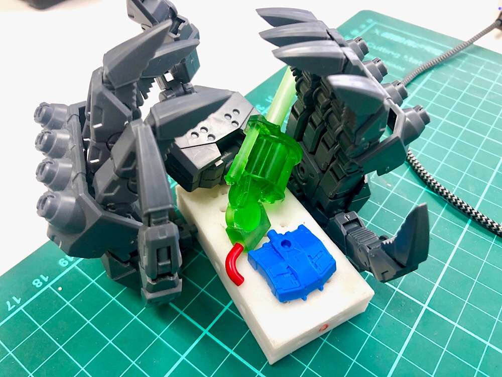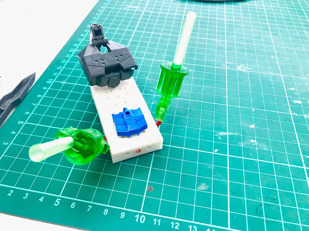 現在プラモのランナーは3ミリで統一されているそうなので、3ミリ穴があるだけであらゆるパーツを流用可能に