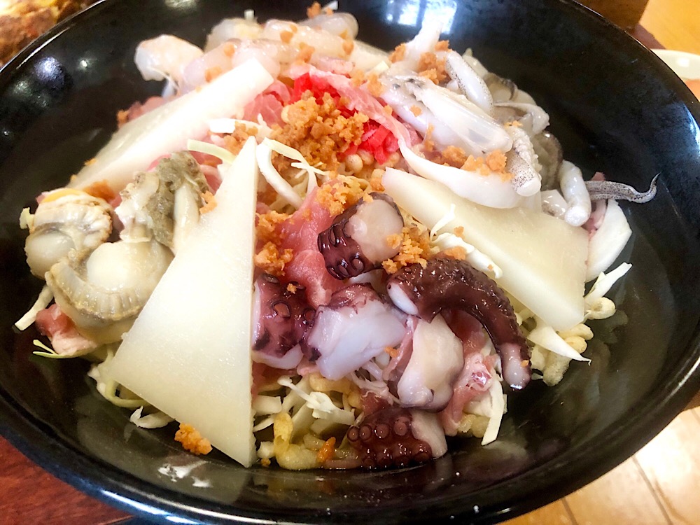 魚介に肉、そして餅が入っている豪華なセット!