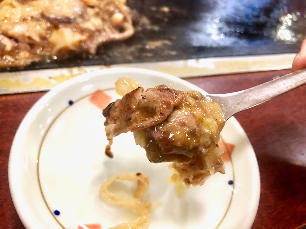 焦げ目をつけて、コテで掬えば食べられます