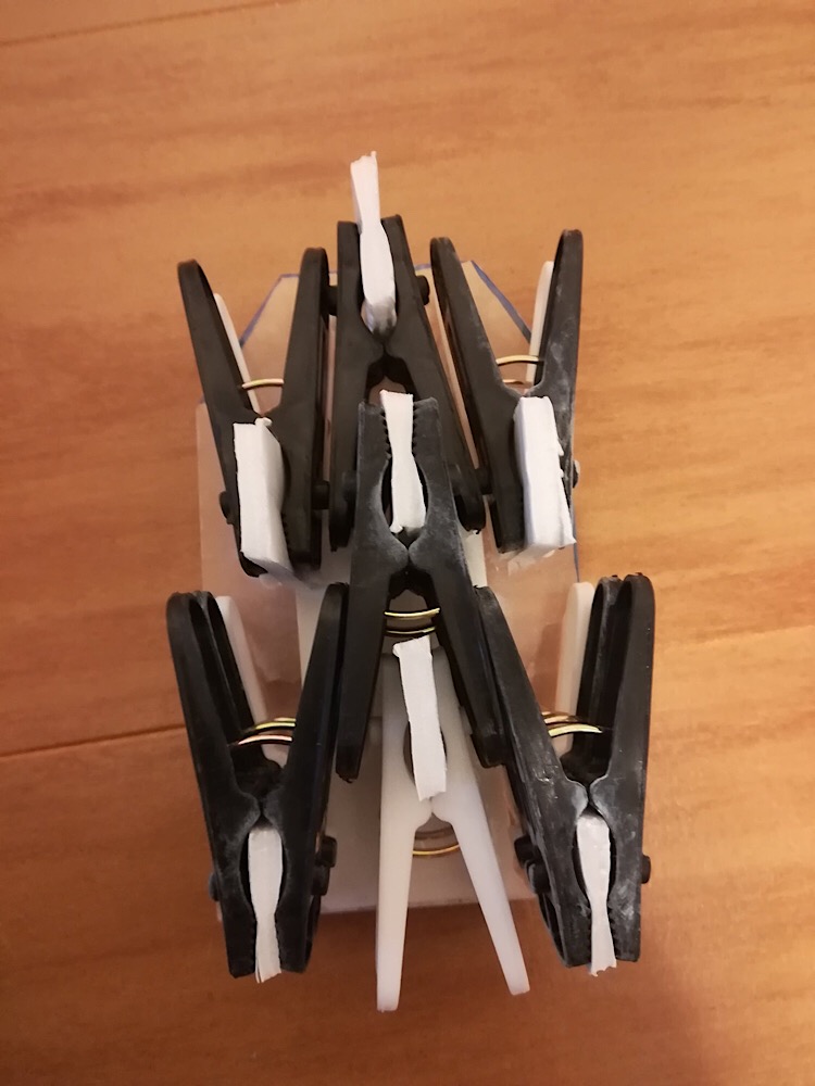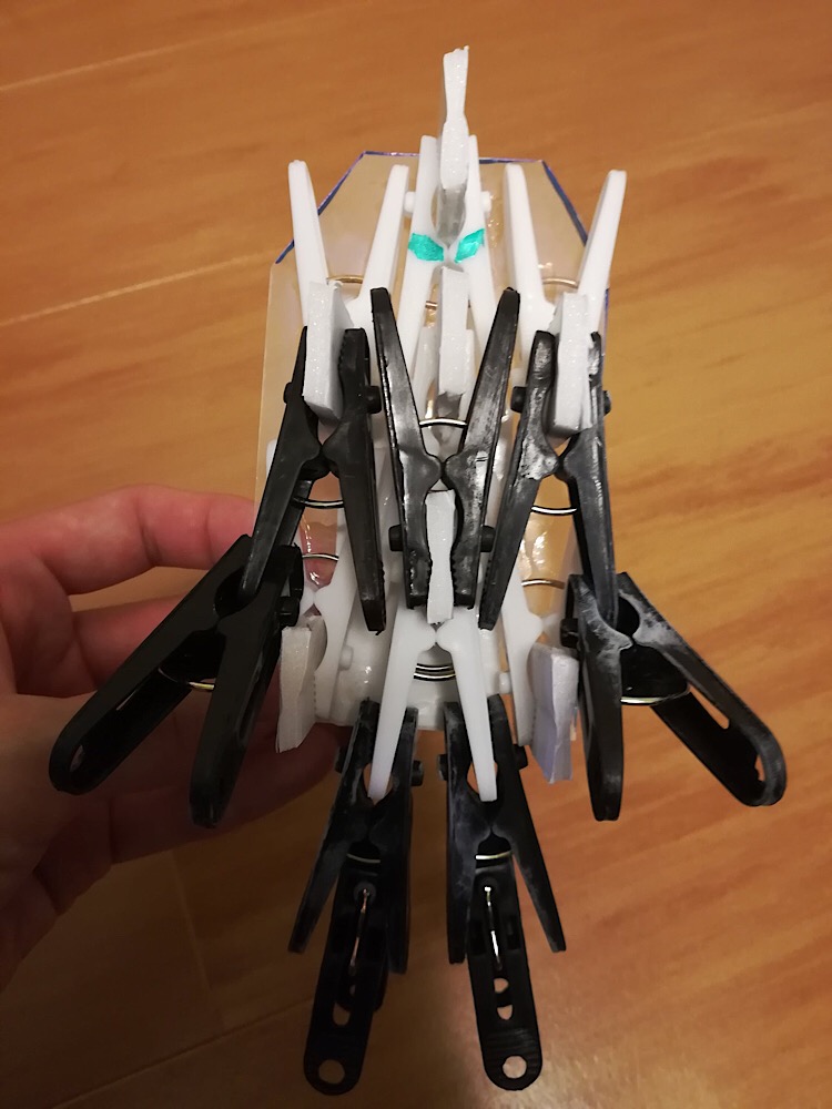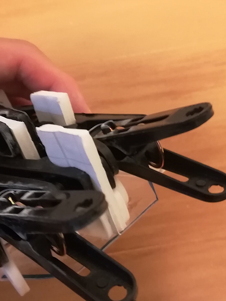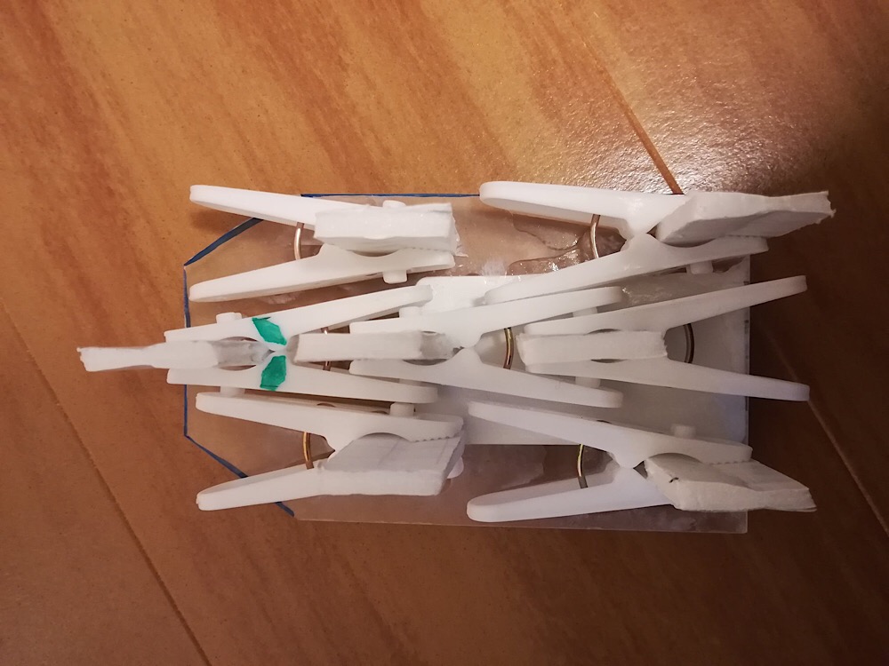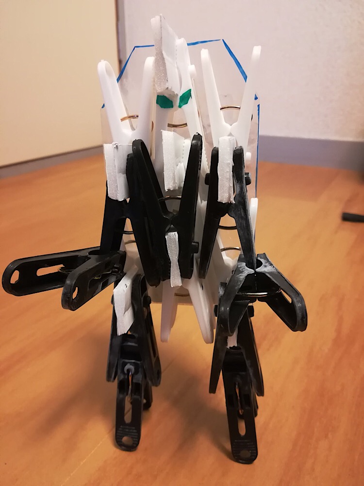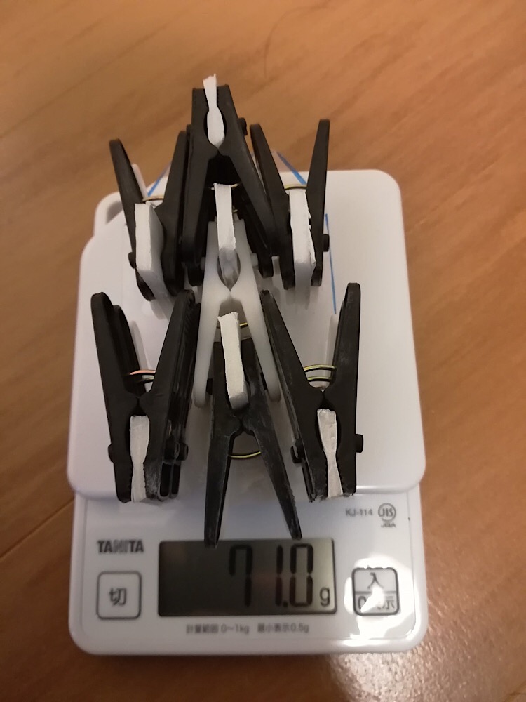 洗濯バサミを軽量なものにし、ジョイントも発泡スチロールにする事で軽量化に成功!