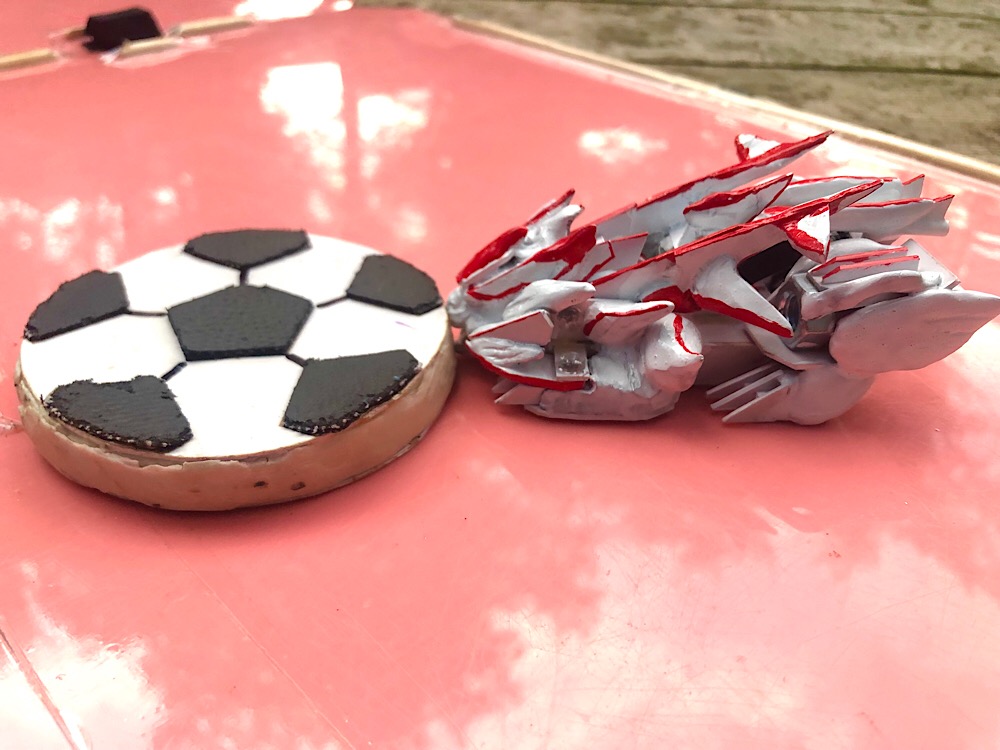 10月5日芹ヶ谷公園玩具会その4 ワイルドガレオン初陣! コメントを残す Tweet Pocket その3はこちら ソルクさんにお貸ししたドライブヴィクターと久々のリベリオンアーシとのバトル! ソルクさん段々シュートテクニックを身につけてる! 最後は見事なフリップアウトを決めた! そしてお次は、ついに完成したワイルドガレオンのバトル!! 食らいつくかのような強烈なシュートはまさに百獣の王! それにしてもサッカーボール型フリックスと獣型フリックスは相性が良いというか 戯れてるみたい!! つづく!