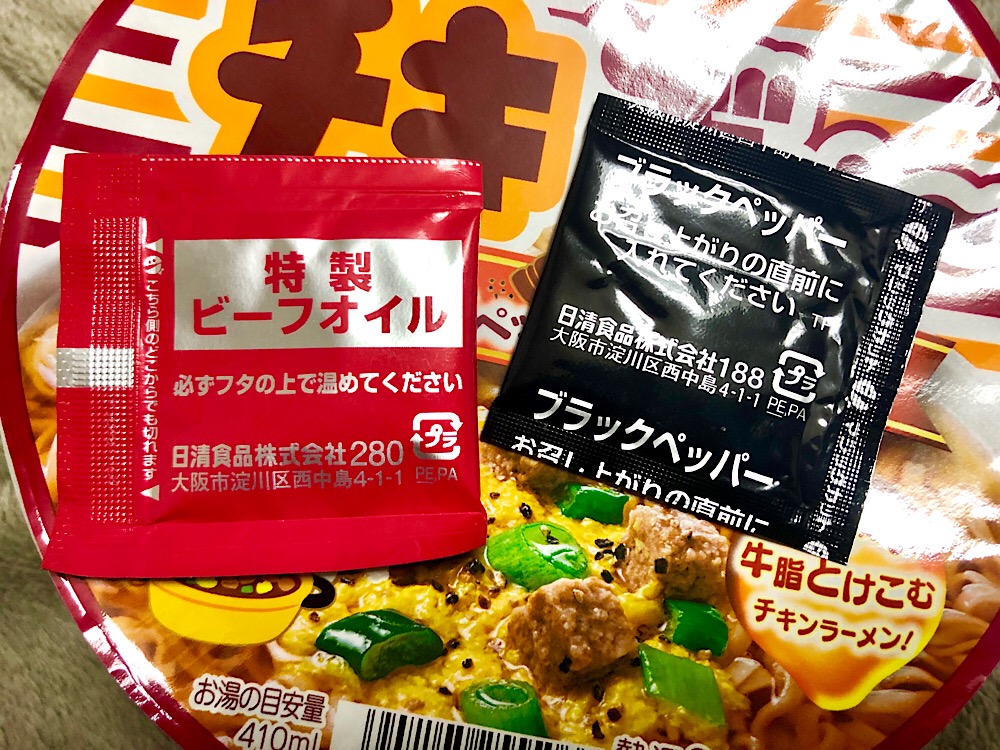 チキンラーメン チキぎゅ〜 鶏ガラペッパービーフ味 コメントを残す Tweet Pocket チキンラーメンの新バージョン! 鶏ガラとペッパーとビーフ!これが不味いわけがない! この特別な調味料がワクワクします 旨味が濃厚!! 元々チキンラーメンは鶏の旨味が濃厚ですが それにペッパーとビーフが加わることで舌をガツンと殴りつけるかのような旨味に襲われます! CM