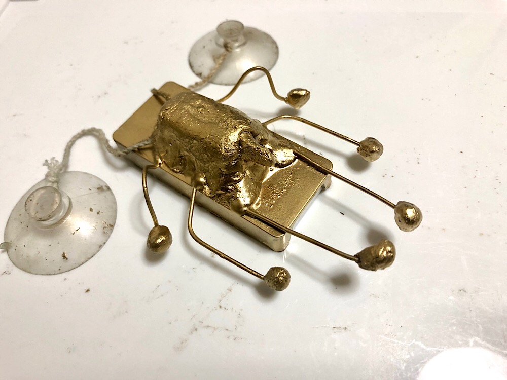 ユージン製フリックス「プロフィットオクトパス」 コメントを残す Tweet Pocket 大阪名物のタコと『儲かりまっか?』を意識した黄金のタコ型機体! 表面処理を敢えてしないパテによってリアルな質感を演出したタコの頭 そして、脚はもちろん8本! 前の6本は針金なので自由に動く! 後ろの二本はタコらしく吸盤だ! くっつくぞ!! CM