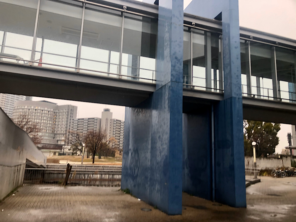 とりあえず扇町公園のここで無理やり雨を凌ぎながらスタート