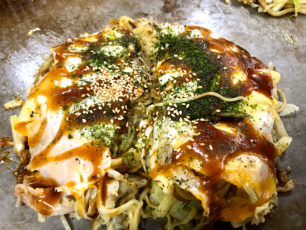 広島名物のお好み焼きに舌鼓を打ちつつ、オフ会の拠点へ!