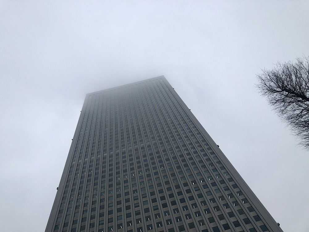 サンシャインビル上空が霞むほどの霧の中……
