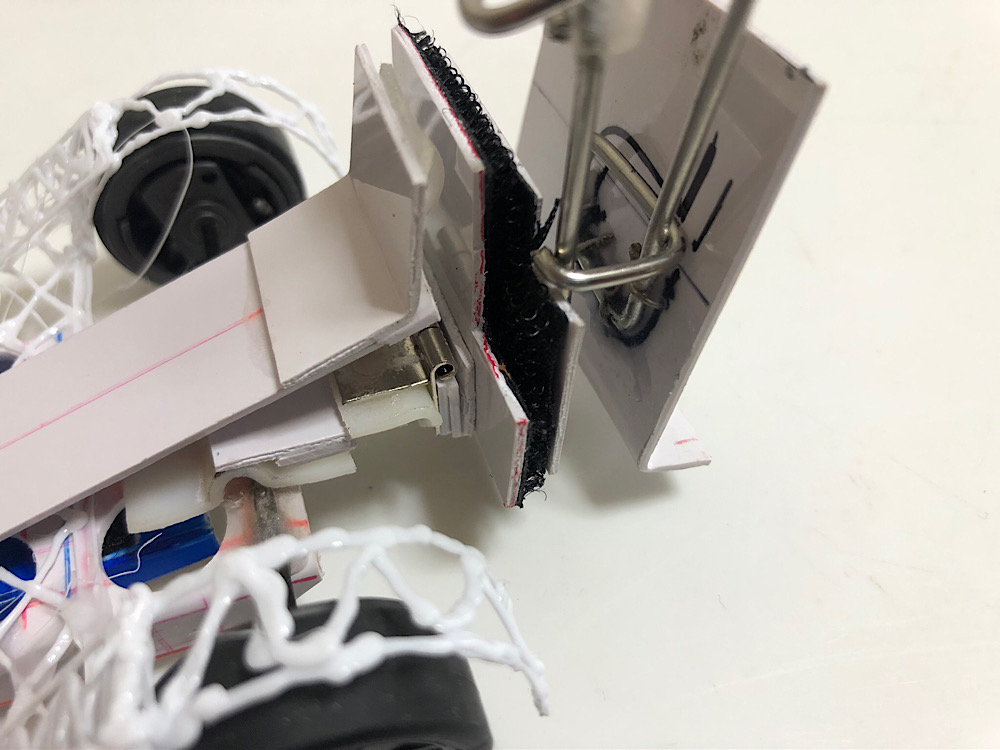 ライオンさんが配布のために即興で作り上げたと言うバネ機構の試作機
