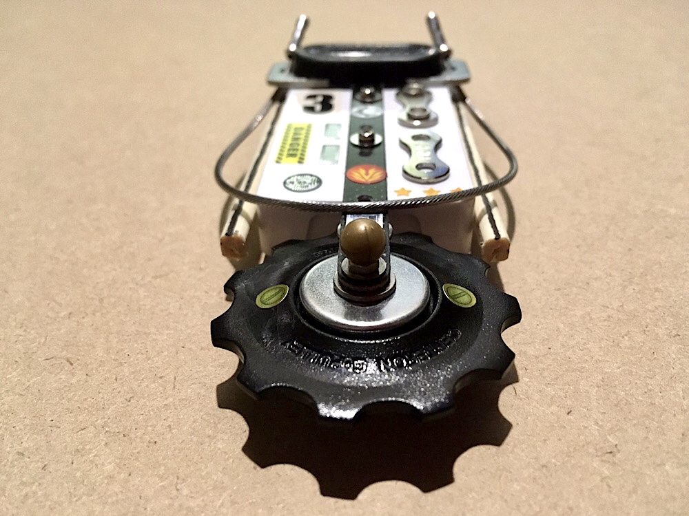 ワイヤーによるバウンド、そしてフロントのギアは硬質のプラ製でフリー回転して攻撃を受け流す!