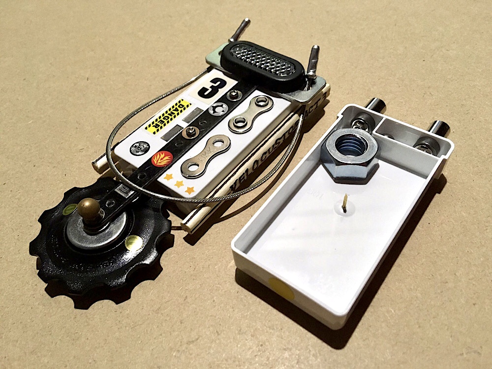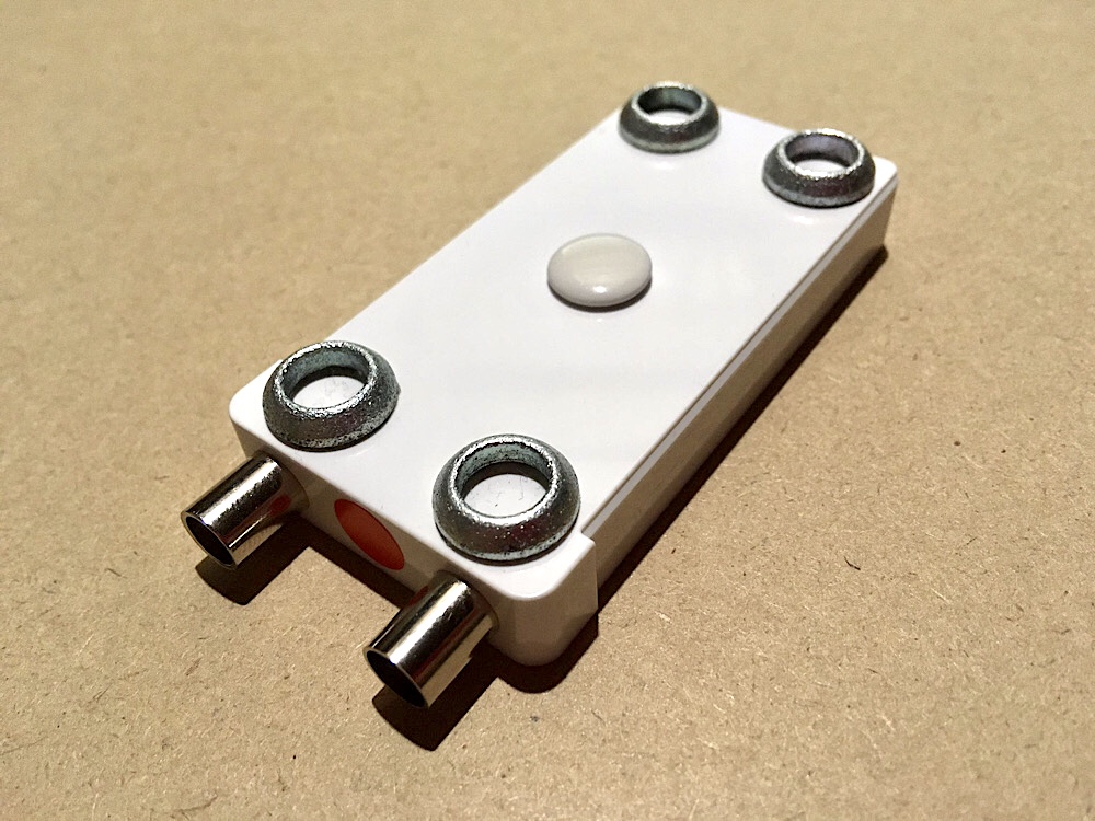 四隅に金属のリング、中央にフリー回転する画鋲を仕込む事で