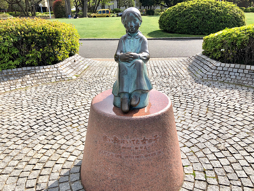 赤い靴はいてた女の子の像