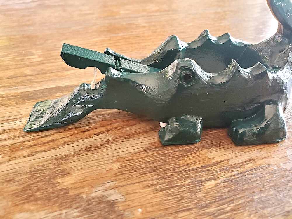 テラオさん製フリックス「ダイル君一号」 コメントを残す Tweet Pocket アキオスさん率いる三重県フリッカー軍団結成の第一歩となるフリッカーの登場だ! なんと、この見事なワニの造形を木工で作っているのだ! リアルな質感! そして、口は木製のクリップで再現しており 通常はバネで閉じるのだが、つっかえ棒を仕込めば口が開き 敵機に噛み付いた時につっかえ棒が折れると噛み付く! まさにワニそのものなギミックを搭載しているぞ!! CM