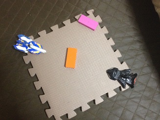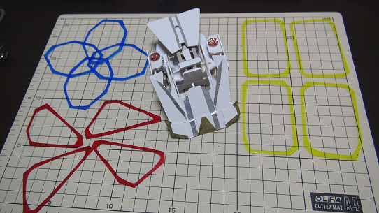 いくつもの薄い板状の分離パーツを『魔法陣』としてフィールド上に散りばめてマスキングテープで貼り付け
