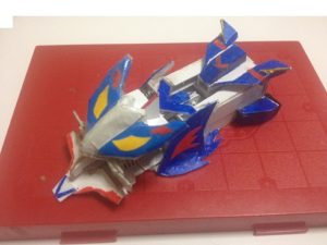 重心を機体の後ろ側に配置すれば延長したフロントパーツが場外へはみ出しても落ちる事がないため、勢いよくシュートしても敵機のみを落とす事が出来る