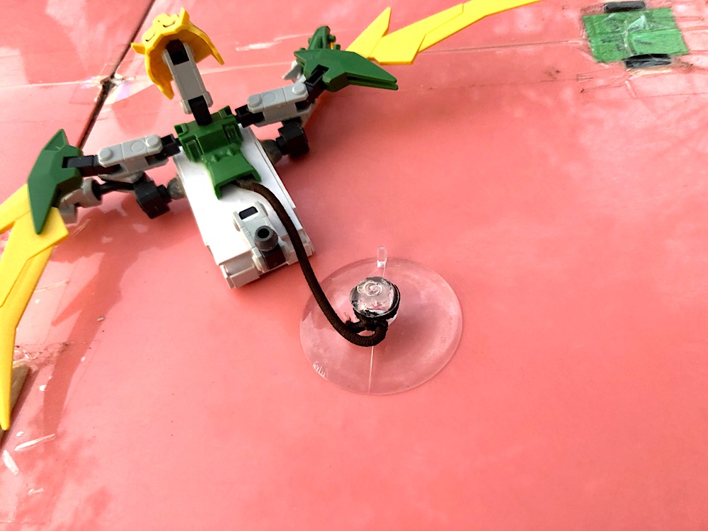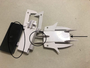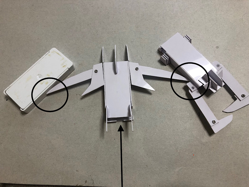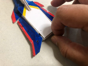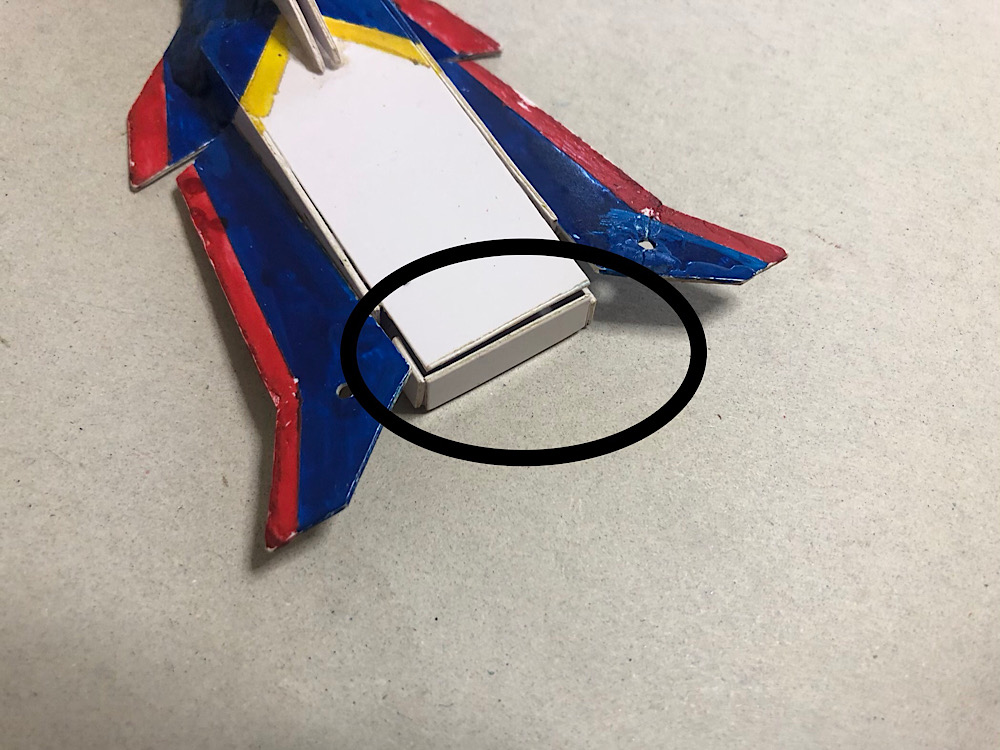 カチ上げバネギミックを搭載した分離パーツを魔法陣の代わりに敵機の下へ差し込み