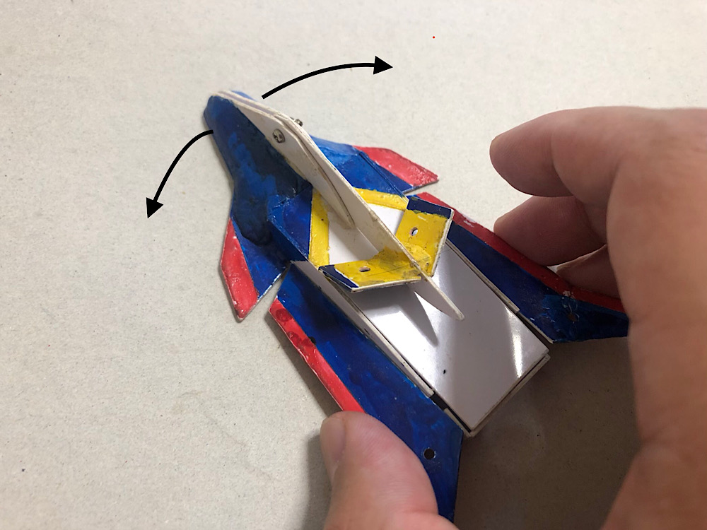 バネに力を加えた状態でロックし、敵機に接触した時に力を解放して敵機を飛ばすギミックを搭載した機体