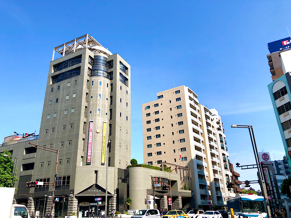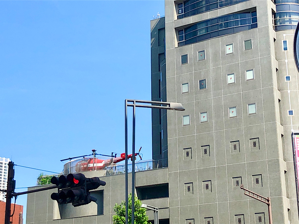 駅前にある四谷消防署の屋上にはヘリコプターが見えます