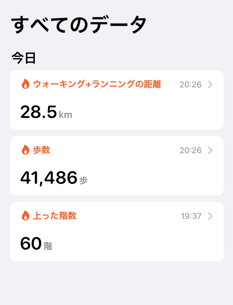 少なくとも2018年4月から、4万歩歩いて30km近く移動した日はない……
