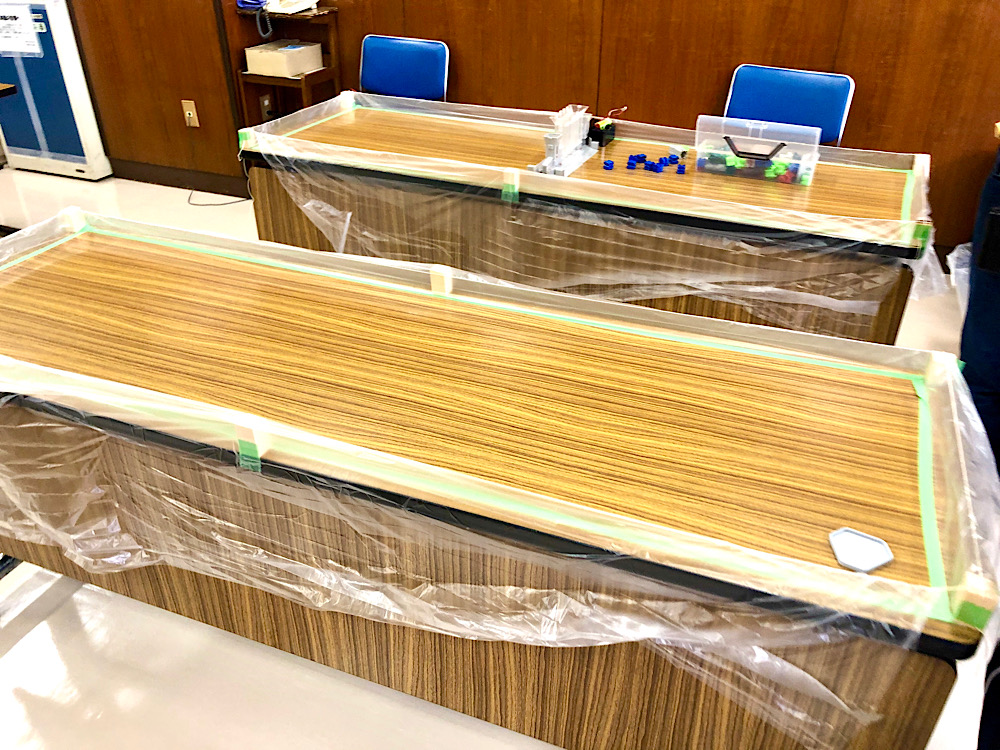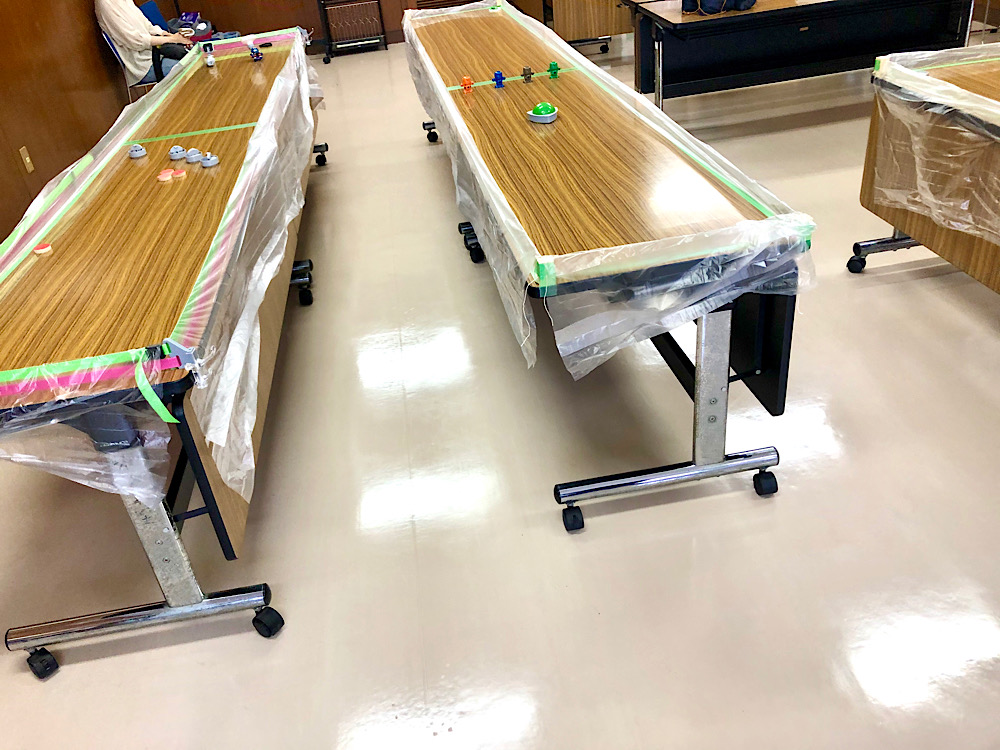 広々とした会議室で、長机そのものを二つ縦に繋げてフィールドにしてます