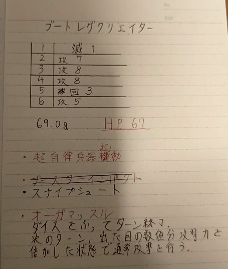 バサミストさんは自機を一機一機じっくりとステータス考えてくれました