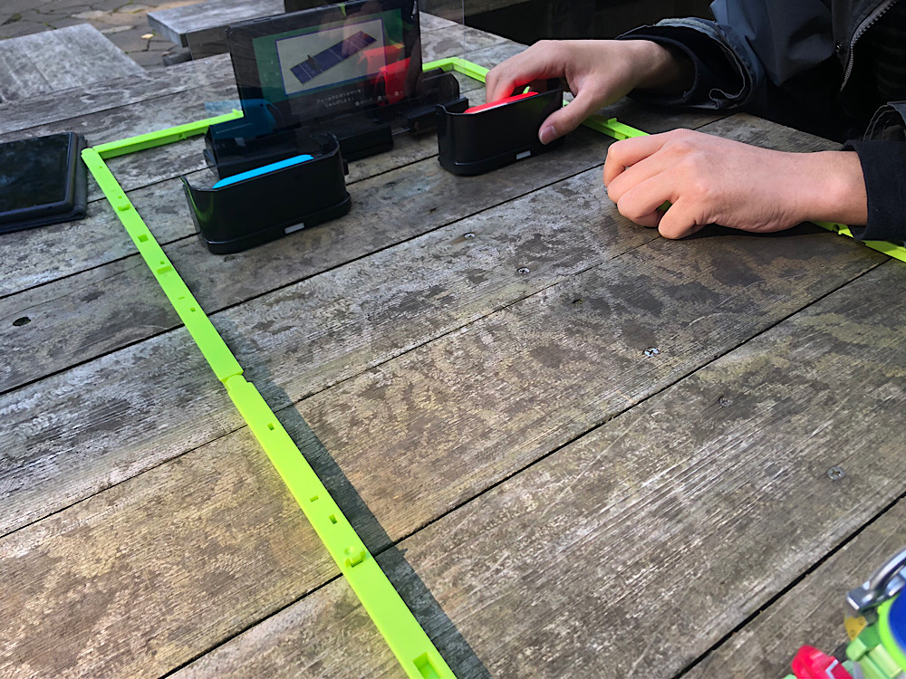 プレイ方法は、ボタンではなく振動感知でスイッチをセットしたカバーにキャップをぶつける事で反応するので
