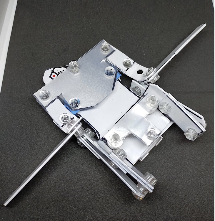 プラ板の曲げ加工とプラネジによる変形機構を組み合わせた機体だ!