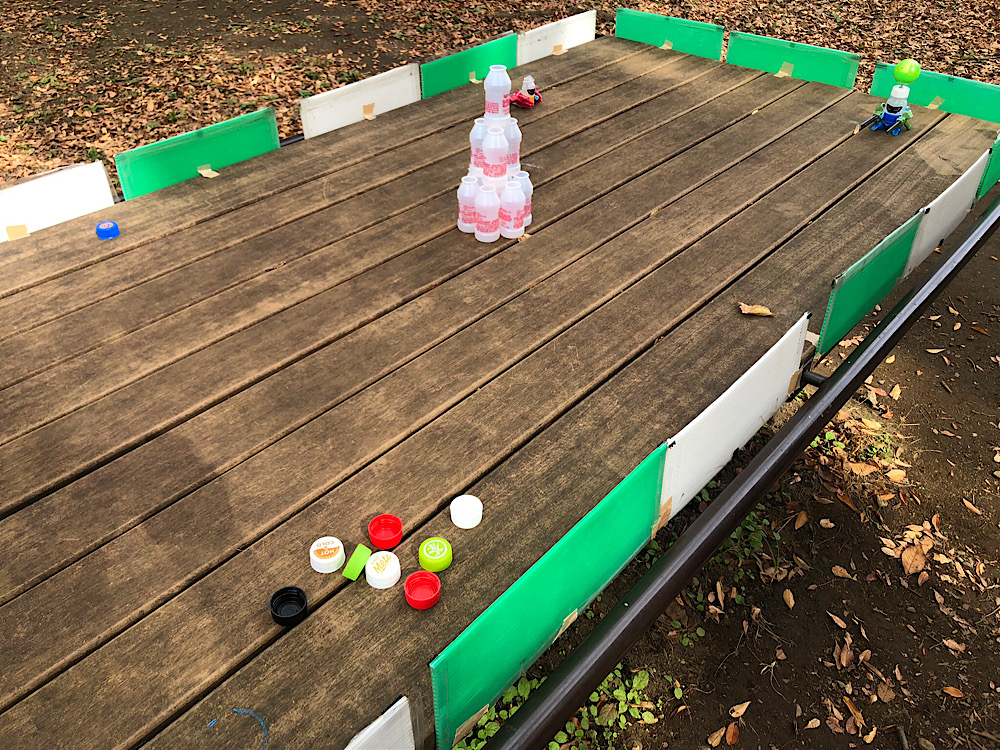 公式フィールドだとフェンスが低すぎてキャップが散らばりすぎたので