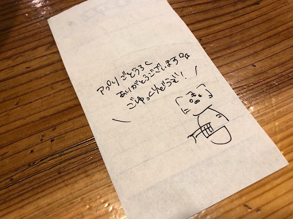 レシートに手書きのメッセージが