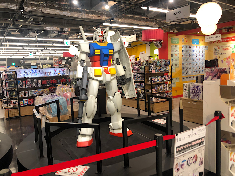 ガンダムのヘッドや等身大ガンダムの像が飾られているアニメショップなんかがあったり