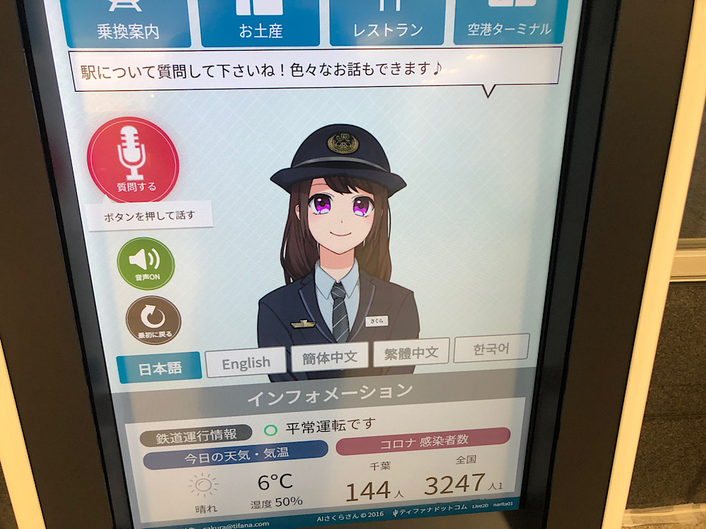 インフォメーションではAI美少女のさくらさんが案内してくれます